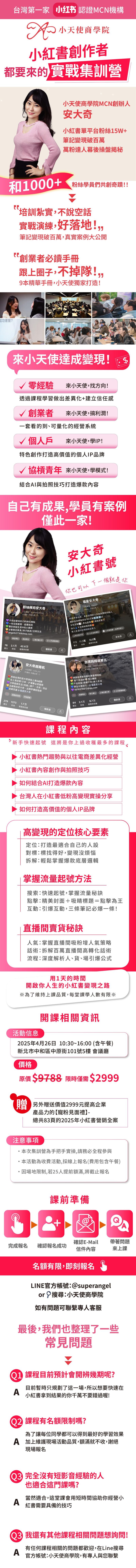 左手IP打造 右手AI賦能,做出高價值的小紅書帳號,最新乾貨滿滿的安大奇全天手把手培訓營