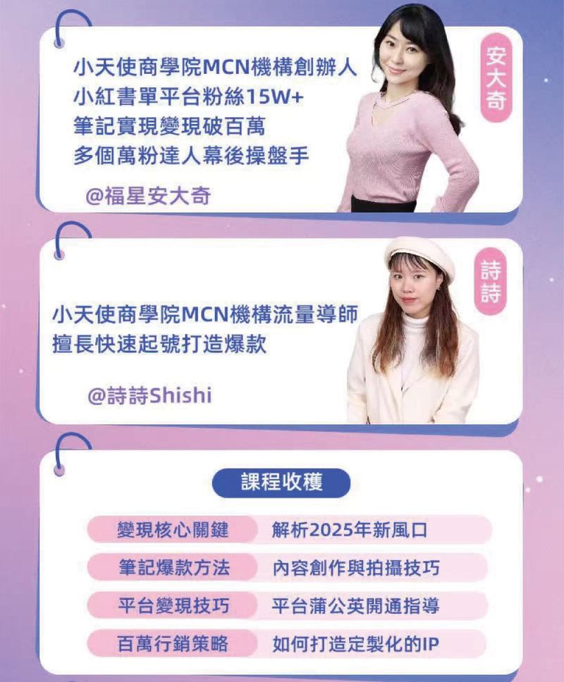 小紅書單平台粉絲超過20萬 上海交通大學終身教育學院外聘講師 筆記實際變現破百萬 多個自媒體萬粉達人幕後操盤手