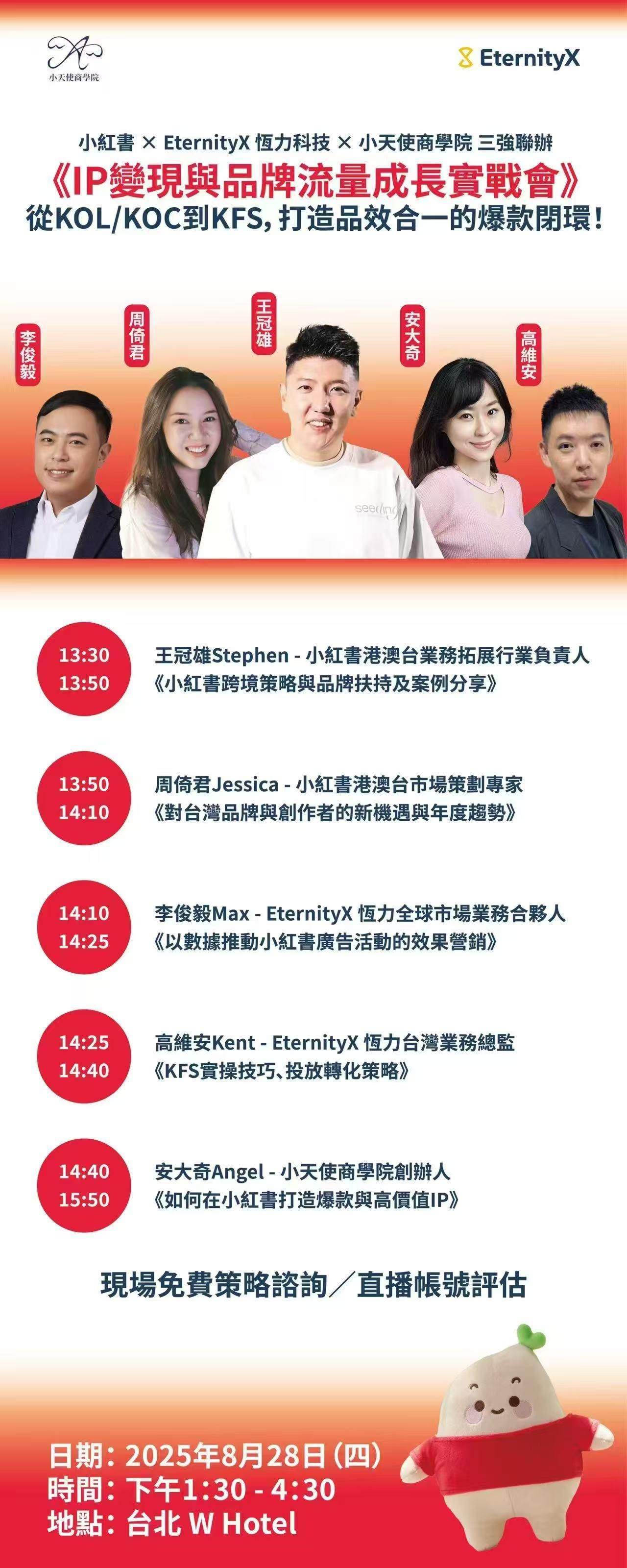 無論您是初步了解平台策略,還是正在規劃品牌變現模式,這張票能讓您深入掌握最新的小紅書趨勢、官方解讀與成功案例。